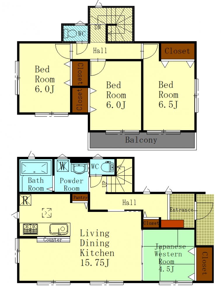 | 間取 | 4LDK ( LDK15.75帖 和室4.5帖 洋室6.5帖 洋室6.0帖 洋室6.0帖 ) |